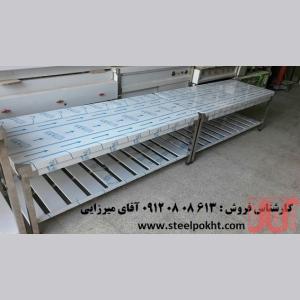 میز کار استیل جزء تجهیزات آماده سازی رستوران به شمار می رود . میز کار استیل به صورت رویه میز رویه استیل و میز تخته کار و میز رویه تفلون ساخته می شود . میز کار استیل در ابعاد و اندازه های متفاوت بنا به درخواست مشتری ساخته می شود. میز کار تمیز کردن مرغ ماهی در گوشه میز کار سوراخی ایجاد می شود که زیر سوراخ سطل آشغال قرار میگیرد که بعد از تمیز کردن مرغ و ماهی اشغال آن از قسمت سوراخ شده به داخل سطل هدایت می شود. پایه های میز کار از پروفیل استیل 40*40 ساخته می شود و یک طبقه در زیر میز به عنوان پاتروکی به منظور بالا بردن استحکام میز برای تحمل وزن بالا و همچنین برای قرار دادن لوازم و تجهیزات اضافه روی آن از جنس ورق استیل یا از جنس پروفیل استیل ایجاد می شود . رویه میز کار صنعتی از ورق استیل بوده و یک لایه چوب نئوپان در زیر آن برای بالا بردن استحکام کار و همچنین به منظور صدا گیری به کار می رود و چوب نئوپان از زیر با ورق کاور شده تا در زمان شستشو آب به چوب نفوذ نکند. کارشناس فروش : 613 08 08 0912 آقای میرزایی.